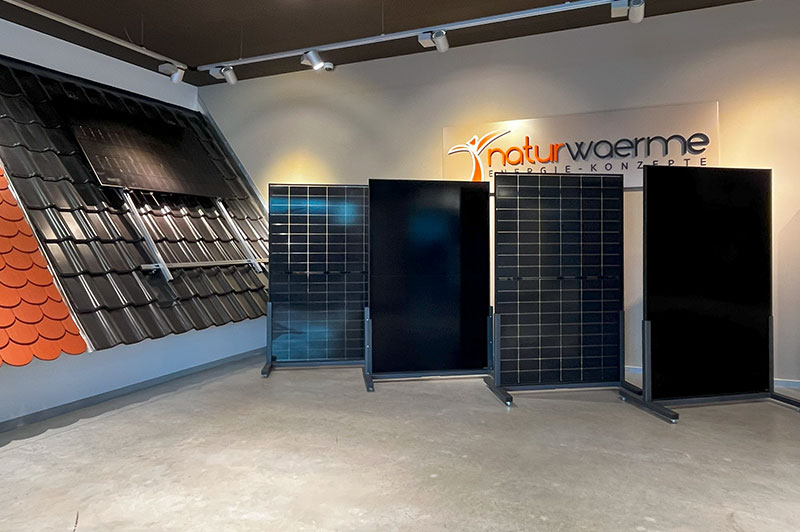 Hier zeigen wir dir unsere brandneue Photovoltaik Ausstellung in Bruchköbel. Dort kannst du hautnah erleben, wie fortschrittliche Technologie und Natur Hand in Hand gehen. Sieh dir die neuesten Photovoltaikmodule aus unserem Produktsortiment an und erfahre, wie du mit naturwaerme in eine grünere Zukunft investieren kannst.